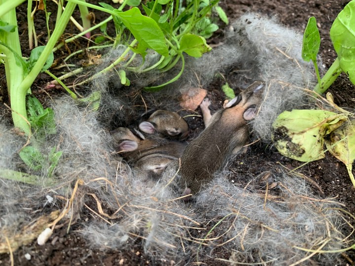 I immediately felt miffed and thought about building a bigger wall to keep “them” out. Emotion and resistance were present. I moved aside to harvest spinach, and there, in the protection of the covered raised bed, were my teachers. I immediately softened at the discovery of a beautiful litter of baby bunnies huddled together under a blanket of soft fur. Their eyes were not yet open to the world.